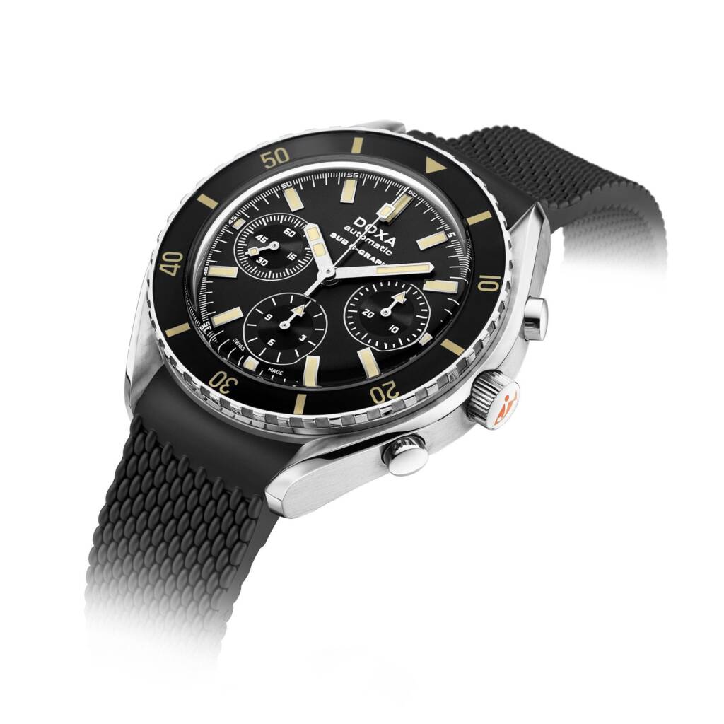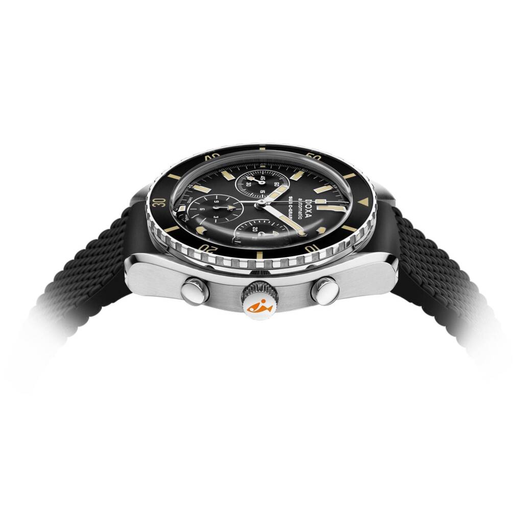 Krone: Einseitig drehbare Lünette mit einem Einsatz aus Saphir oder Edelstahl, Verschraubte Krone