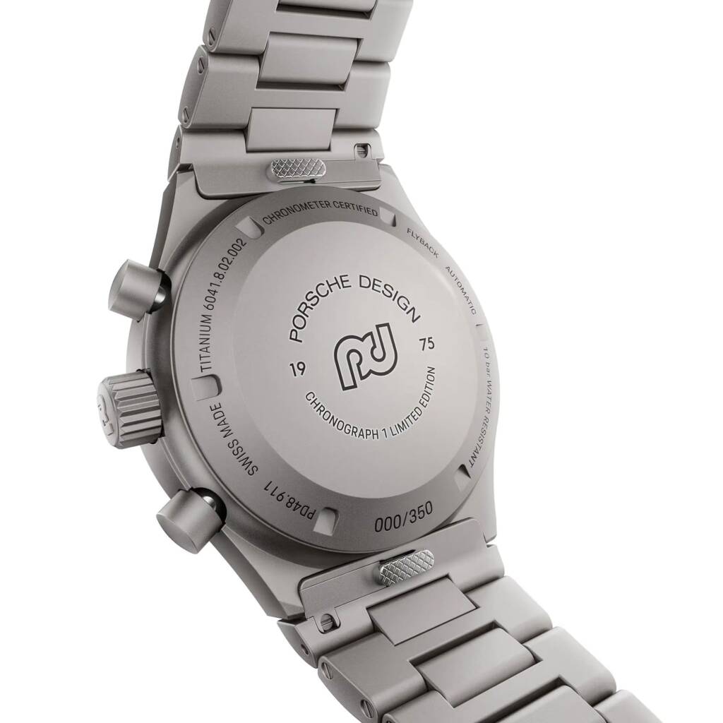 Gehaeuseboden: Geschlossener Gehäuseboden mit historischem Porsche Design-Icon und der Jahreszahl 1975
