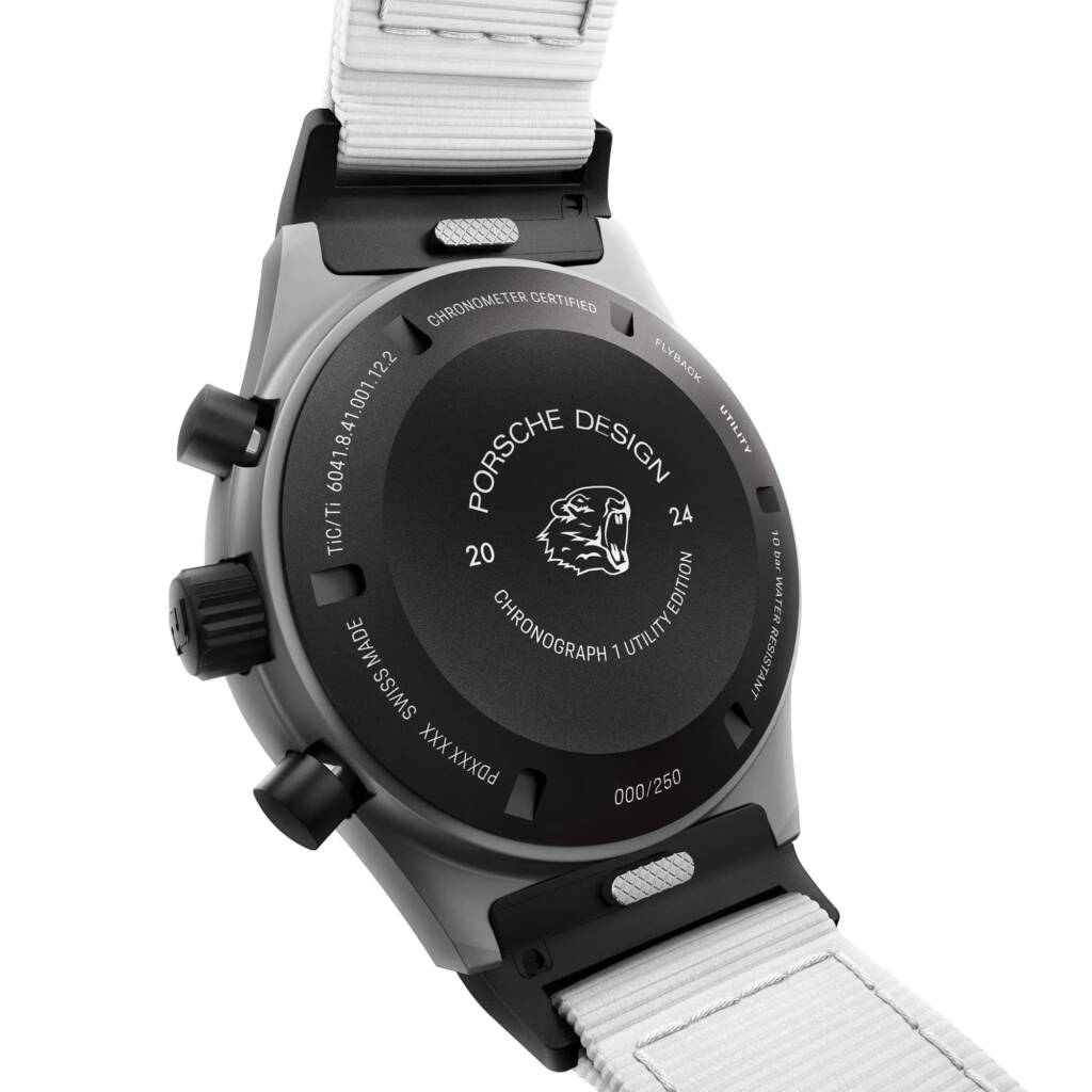 Gehaeuseboden: Geschlossener Gehäuseboden mit Mankei Gravur sowie dem „Chronograph 1 Utility Edition“- Schriftzug
