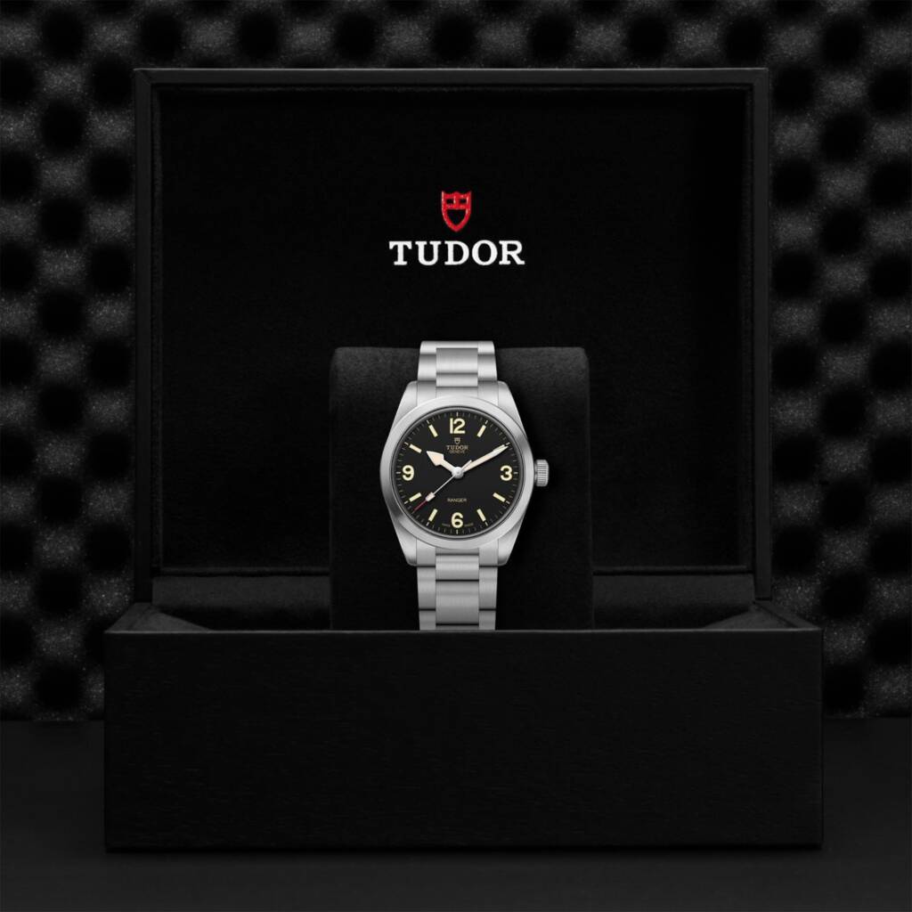 Krone: Polierte, satinierte Lünette in Edelstahl, Verschraubbare Aufzugskrone in Edelstahl mit TUDOR Rose im Relief