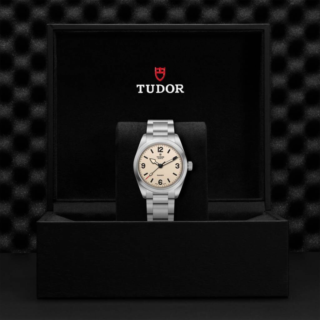Krone: Polierte, satinierte Lünette in Edelstahl, Verschraubbare Aufzugskrone in Edelstahl mit TUDOR Rose im Relief