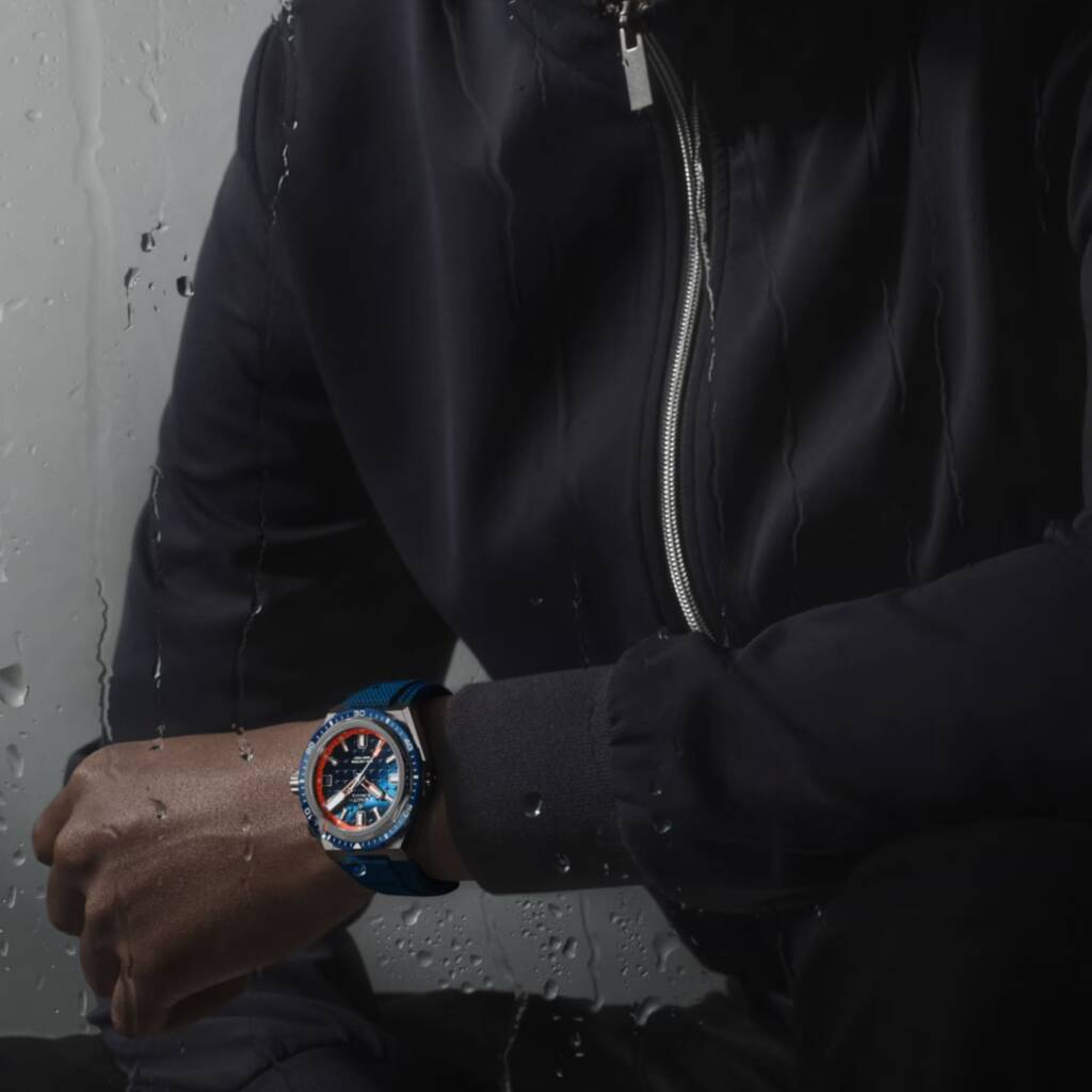 Krone: Lünette aus blauer Keramik, Heliumventil, Verschraubte Krone