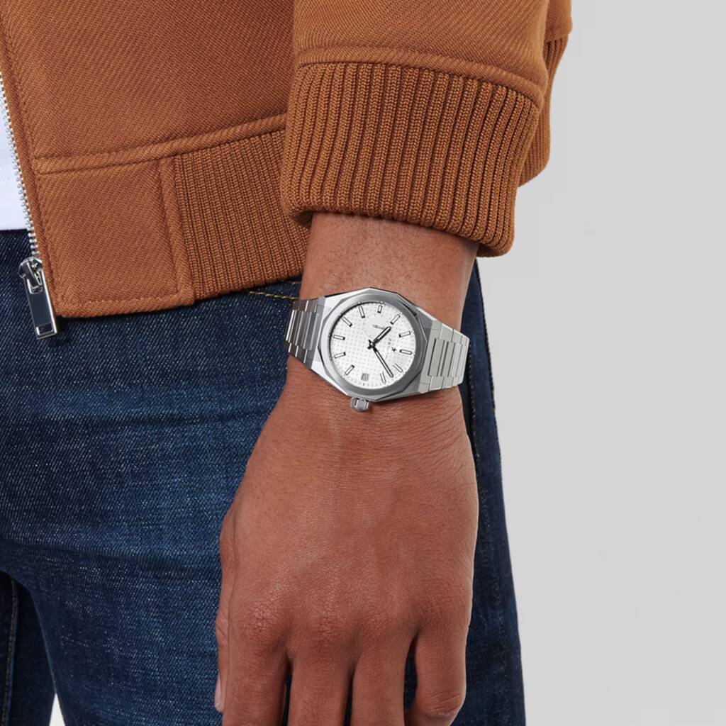 Funktionen: 2-Zeiger, Datum, Stunden, Minuten, Anzeige der 1/10-Sekunde bei 9 Uhr, Datumsanzeige bei 3 Uhr