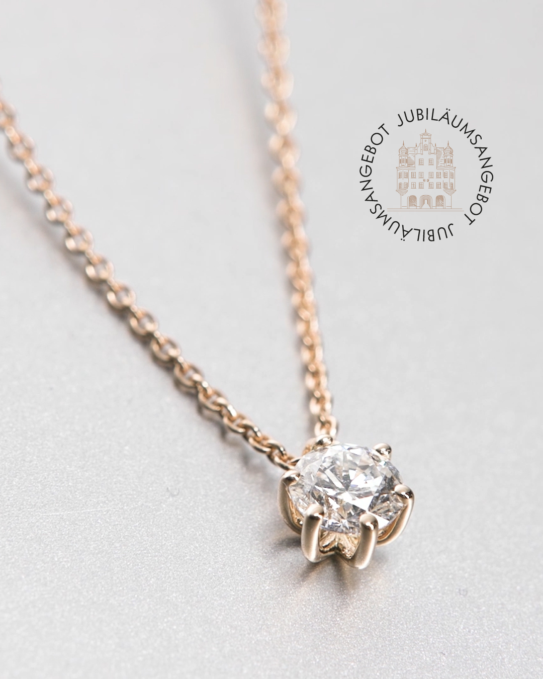Unser Solitär-Schmuck inszeniert Brillanten in Vollendung. Damit die Brillanten ihre Strahlkraft vollends entfalten können, wurde die Fassung so filigran konstruiert, dass Sie ihr unvergleichliches Feuer von den verschiedenen Seiten aus betrachten können.